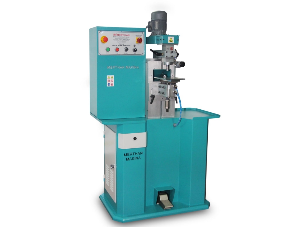 DİK İÇ OYMA MAKİNASI Vardolasız düz tabanlar için taban yüzeyine makinanın üzerine takılan bıçak sayesinde tabanın iç yüzeyine dik olarak yapılan frezeleme işlemini gerçekleştirmeyi sağlayan makinadır. VERTICAL ENGRAVING MACHINE This machine enables the milling process to be done perpendicular to the inner surface of the at outer soles without welts, by utilizing the blades mounted on it. ФРЕЗЕРНЫЙ СТАНОК ДЛЯ ОБРАБОТКИ  ВНУТРЕННЕЙ ВЕРТИКАЛЬНОЙ ПОВЕРХНОСТИ Станок предназначен для вертикальной фрезерной обработки внутренней поверхности гладких подошв без ранта при помощи ножа, установленного на машине. ماكینـة ثقب لب عمودي اج ام عبارة عن ماكینة تعمل على تحقیق عملیة السحق المنفـذ بشكل عمودي على السطح الداخلي للقاعدة فضلا على السكینـة المركبة فوق الجھاز وسحق سطح القاعـدة للقواعـد المستویة بدون شریط جلـدي .