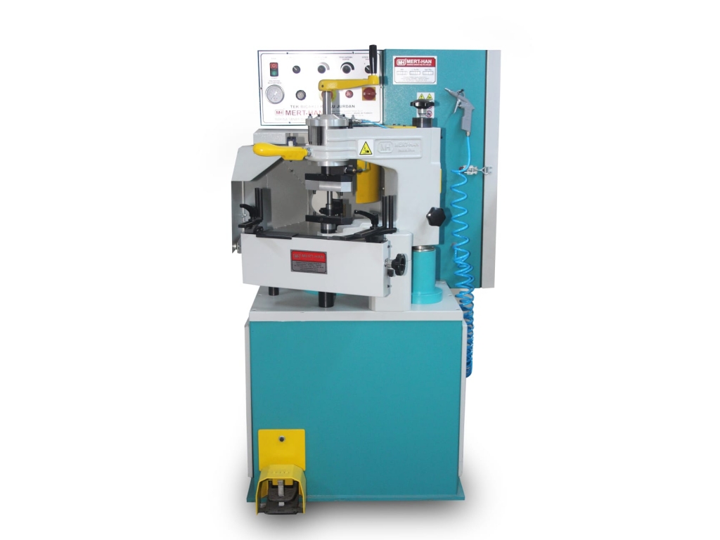 TEK BIÇAKLI KOLLU JURDAN MAKİNASI Tabanların etrafını mil üzerinde bulunan bıçakla gerekli ölçülere getirmeyi veya şekil vermeyi sağlayan makinadır. SINGLE BLADE, LEVERED OUTER SOLE SHAPING MACHINE This machine can shape the outer soles of the shoes and bring them to the desired sizes using the blade over the shaft. СТАНОК ДЛЯ НЕОЛИТОВЫХ ПОДОШВ С ОДНИМ ФОРМОВОЧНЫМ НОЖОМ Станок придает форму и выполняет подгонку подошвы по необходимым размерам посредством обрезки при помощи ножа, установленного на вале. ماكینــة تنفیـذ المحالیل مجھزة بالكوع احادي السكین ام اج  تعمل ھـذه الماكینـة على تشكیل او تسجید حافات القواعـد وتحـدید المقاسات اللازمة مـع سكینـة موجودة فوق المحور.